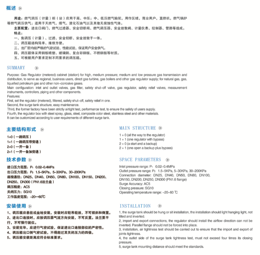 河北慧星調(diào)壓器有限公司主導(dǎo)產(chǎn)品有燃?xì)庹{(diào)壓器、燃?xì)庹{(diào)壓箱、燃?xì)庹{(diào)壓柜、燃?xì)庹{(diào)壓房、安全切斷閥、安全放散閥、燃?xì)膺^濾器等氣輸配產(chǎn)品。產(chǎn)品適用于天然氣、人工煤氣、液化石油氣、礦井氣等介質(zhì)。